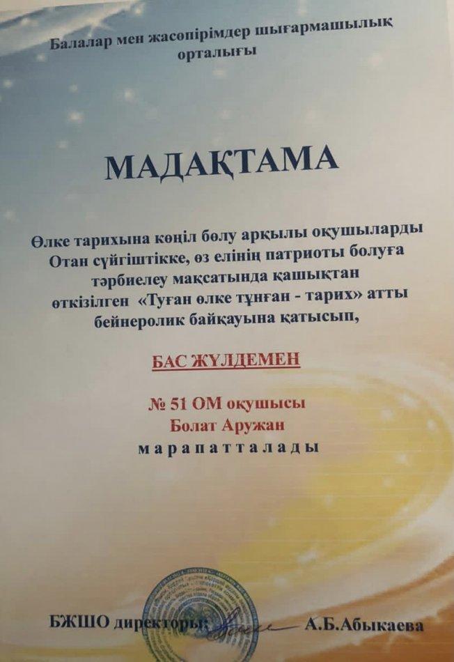 "Бас жүлде" - Болат Аружан 10 "А" сынып