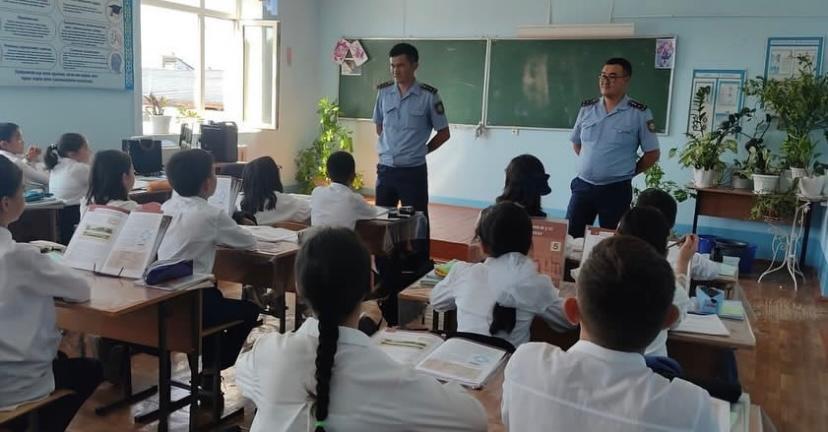 26.09.2022 жылы Ювеналды полиция тобының учаскелік полиция инспекторлары Т.Нусупкулов және Е.Мамаев 5-7 сынып оқушылары арасында "Заң және жасөспірім" тақырыбына дәріс өткізді.