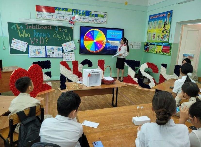 Жамбыл облысы әкімдігінің білім басқармасы Қордай ауданының білім бөлімінің Ахмет Байтұрсынұлы атындағы орта мектебінің ағылшын тілі апталығына орай 13 сәуір күні 5 а,ә,б,ғ сыныптар арасында “Who knows English well?" атты сыныптан тыс интеллектуалды ойын өткізілді. Іс-шара мақсаты "Polyglot", "Baiga","Magic box" ойындары арқылы оқушылардың ағылшын тілі пәнінен алған білімдерін жалпылай шолу жасау, қайталау жұмыстарын жүргізу. Оқушылардың ауызша сөйлеу, тыңдау, түсіну, ағылшын тіліне қызығушылығын арттыру. Өткізген: ағылшын тілі пәнінің мұғалімі Нұрмахан А.Н.