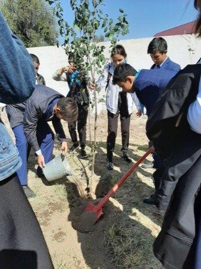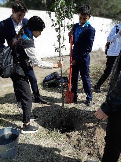 кессең, он тал ек» дей отырып оқушыларымыз жеміс ағаштарын отырғызды.