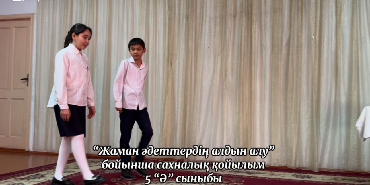 5 “Ә” сыныбы оқушыларының “Нашақорлыққа жол жоқ” тақырыбындағы сахналық көрінісі.