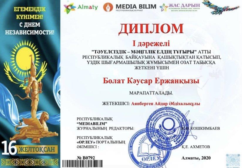 "Тәуелсіздік - мәңгілік елдің тұғыры" атты Республкиалық байқау!
